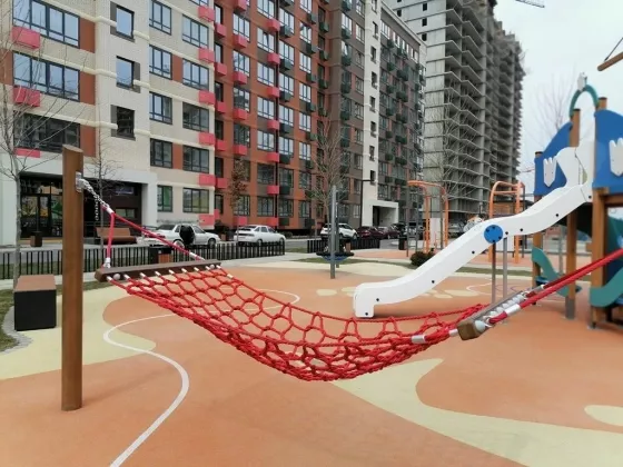 Для прогулок и отдыха зеленая аллея и музыкальный фонтан, комплекс уличных тренажеров и велодорожек.