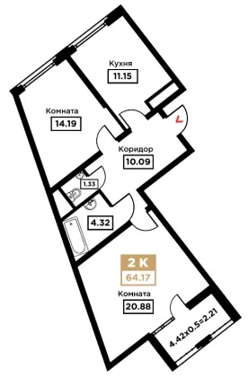 Продается 2-х комн. новостройка, 64.17 кв.м., 7/21 эт