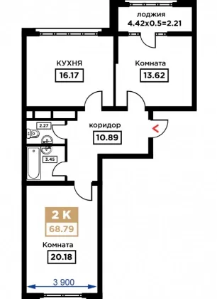 Продается 2-х комн. новостройка, 68.79 кв.м., 5/21 эт