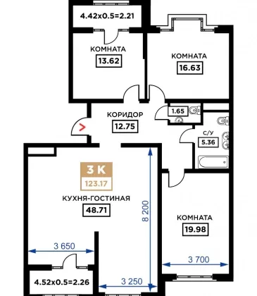 Продается 3-х комн. новостройка, 123.17 кв.м., 8/21 эт