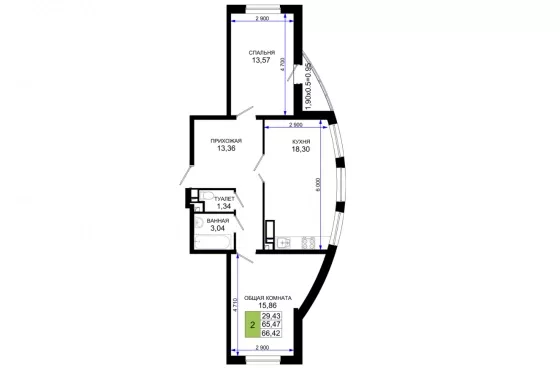 Продается 2-х комн. новостройка, 66.24 кв.м., 4/17 эт