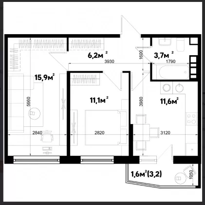 Продается 2-х комн. новостройка, 50.1 кв.м., 2/9 эт