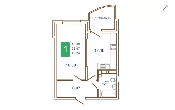 | Площадь, кв.м. | 42.2 |