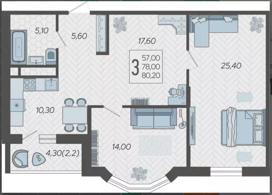 Продается 3-х комн. новостройка, 80.2 кв.м., 4/16 эт