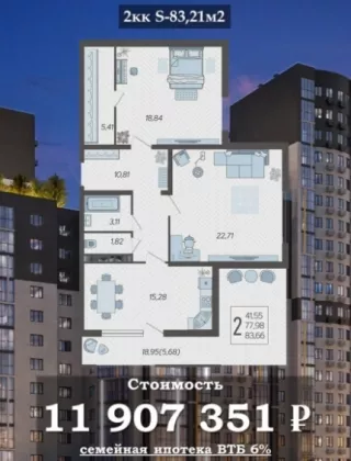 Продается 2-х комн. новостройка, 83 кв.м., 4/23 эт