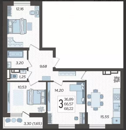 Продается 3-х комн. новостройка, 68.2 кв.м., 10/18 эт