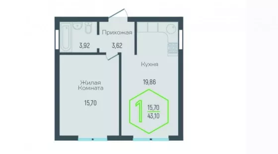 Продается однокомнатная новостройка, 44 кв.м., 1/3 эт