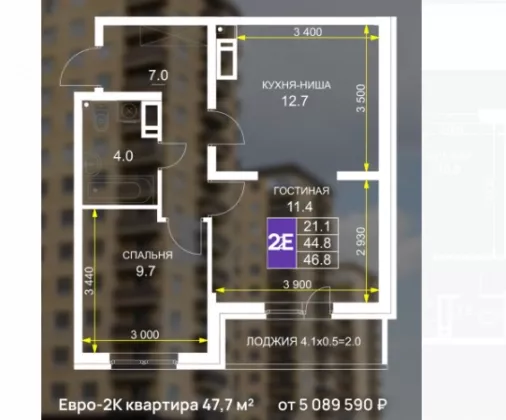Продается 2-х комн. новостройка, 46.8 кв.м., 10/16 эт