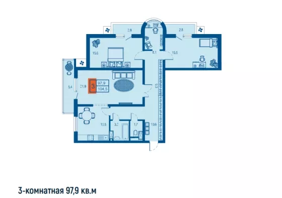 Продается 3-х комн. новостройка, 104.5 кв.м., 3/16 эт