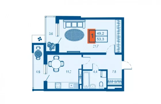 Продается однокомнатная новостройка, 46 кв.м., 2/16 эт