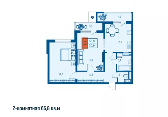 Продается 2-х комн. новостройка, 63 кв.м., 12/17 эт