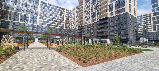 Особенности жилого комплекса: развитая инфраструктура — рядом находятся вузы, музеи, театры и достопримечательности, благоустроенная набережная, трамвайные остановки; внутренняя территория — это авторский двор-сад: высокие растения, мощеные тропинки, места для отдыха; технология выполнения проекта — кирпично-монолитный домостроение.