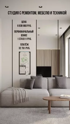 Хорошее предложение на рынке техника, ремонт и мебель, подходит под семейную ипотеку.