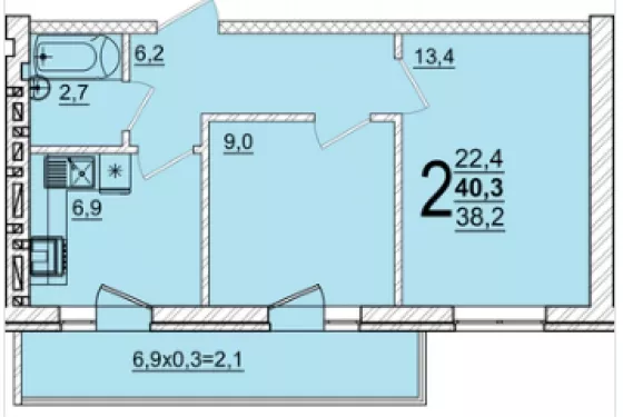Продается 2-х комн. новостройка, 40.3 кв.м., 3/5 эт