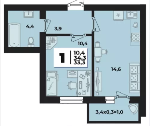 | Площадь, кв.м. | 34.3 |