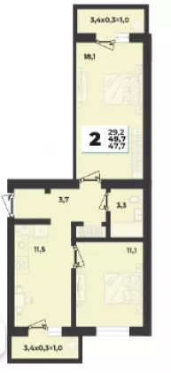 Продается 2-х комн. новостройка, 49.7 кв.м., 2/5 эт