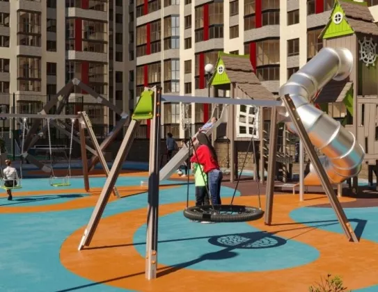 Вся коммерция есть. Рядом цветочный рынок. Школа новая и детский сад. Весь транспорт.