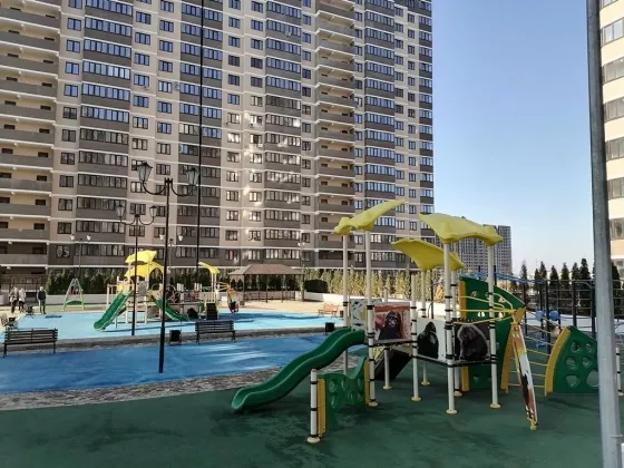 Дом класса комфорт плюс. Система «Умный дом», видео наблюдение со смартфона, бесшумные, современные, корейские лифты. Во дворе стилобат крытая парковка наземная, второй этаж зоны спорта и отдыха для детей и взрослых.