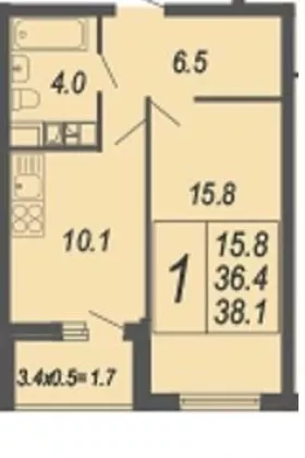 Продается однокомнатная новостройка, 38.1 кв.м., 7/19 эт