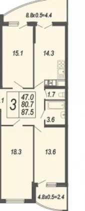 | Площадь кухни, кв.м. | 14.3 |