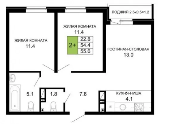 Продается 3-х комн. новостройка, 55.6 кв.м., 15/16 эт