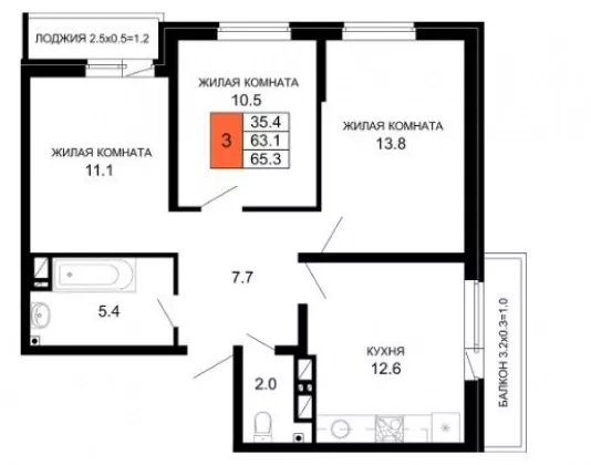 Продается 3-х комн. новостройка, 65.3 кв.м., 11/16 эт