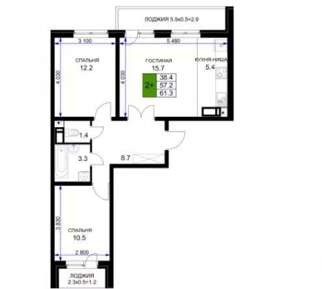 Продается 2-х комн. новостройка, 61.3 кв.м., 14/16 эт
