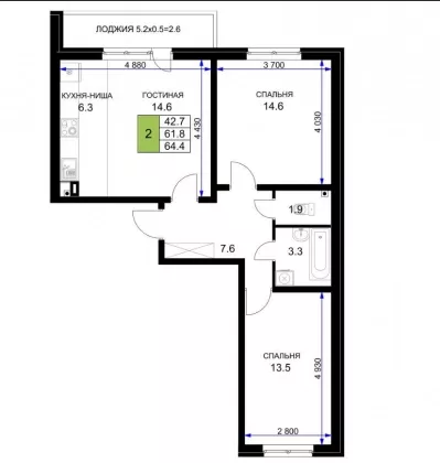 | Комнат в квартире | 2 |