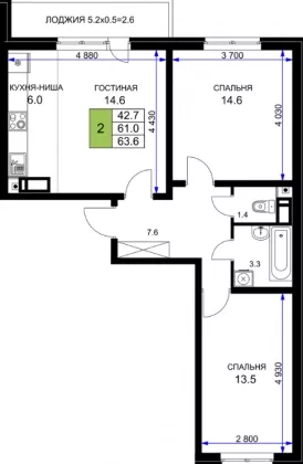 | Площадь, кв.м. | 63.6 |
