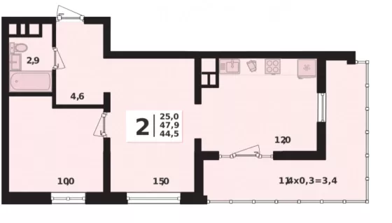 Продается 2-х комн. новостройка, 45 кв.м., 8/19 эт