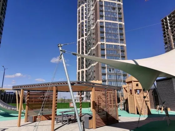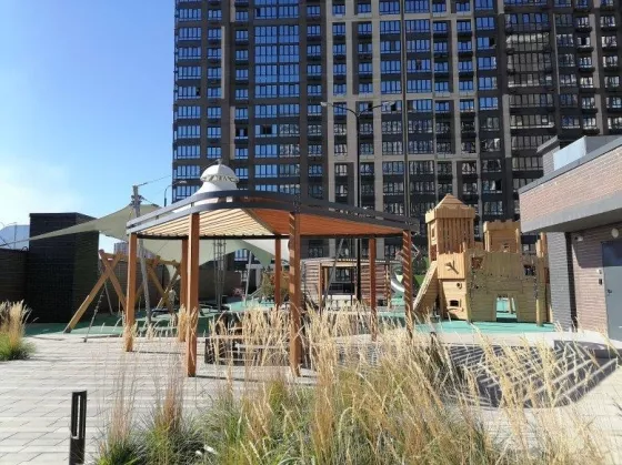 В доме система умный дом, три лифта!!! На первом этаже помещение для хранения самокатов, велосипедов и колясок. Отведено специальное место для мытья лапок животным. На территории построен детский сад, а также несколько детских садов и школа в шаговой доступности.