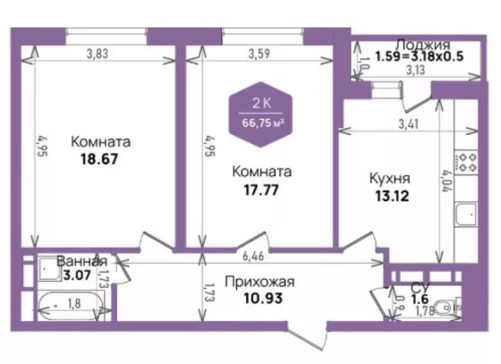 Продается 2-х комн. новостройка, 66.75 кв.м., 21/24 эт