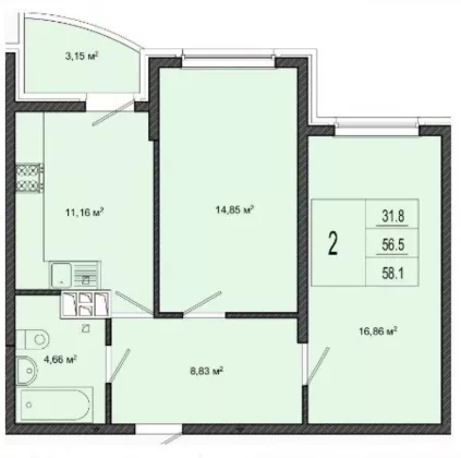 Продается 2-х комн. новостройка, 58.1 кв.м., 16/19 эт