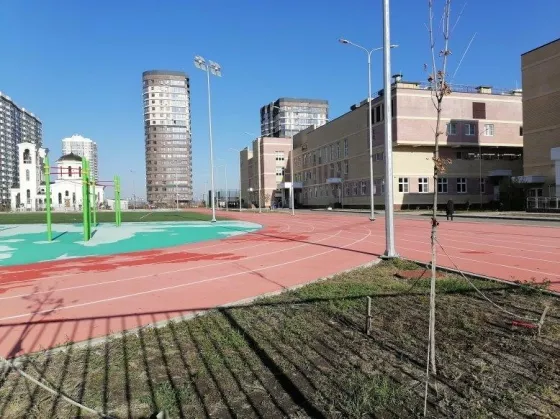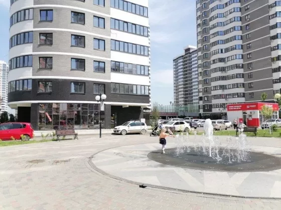 Красивые входные группы, два лифта, большая прогулочная аллея с фонтаном и с скамейками для отдыха. Много зелени кустарников и красивых деревьев. Во дворе стилобат, первый уровень стилобата это парковки для авто, второй уровень для отдыха взрослых и детей: мангальные зоны с беседками и лавками , игровые площадки футбольные и баскетбольные поля.