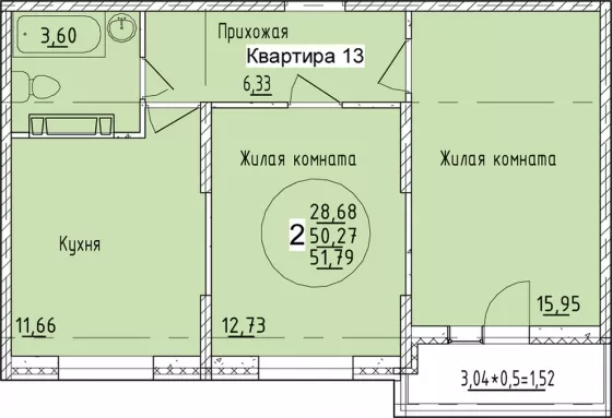 Продается 2-х комн. новостройка, 51.79 кв.м., 14/19 эт