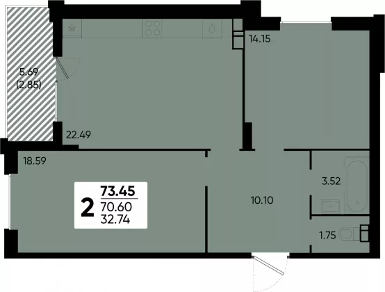 Продается 2-х комн. новостройка, 73.45 кв.м., 12/24 эт