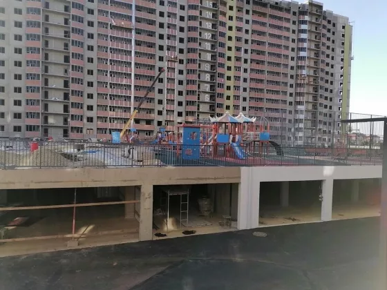 Во дворе много места, большое расстояние между домами позволяет свободно передвигаться по территории, также есть стилобат ( внизу парковочные места, вверху детские и спортивные площадки).