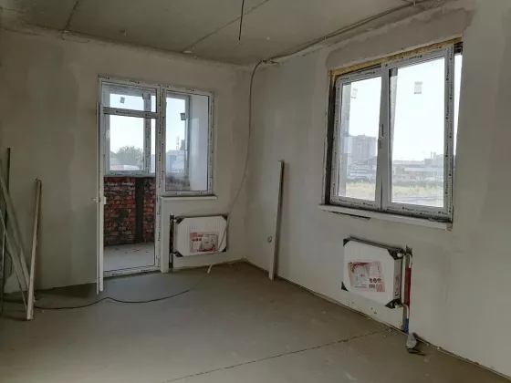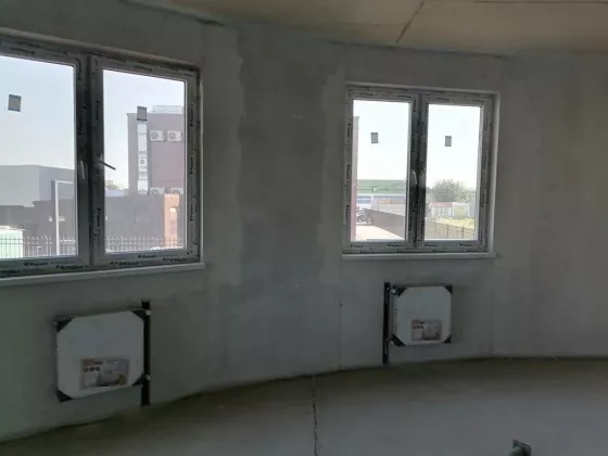 В комнате два окна, есть возможность поделить эту комнату на две и получится трёхкомнатная квартира. Лоджия застеклена, на фасаде здания выделены специальные места для установки сплитсистемы.
