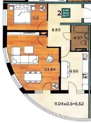 Продается 2-х комн. новостройка, 63.77 кв.м., 8/17 эт