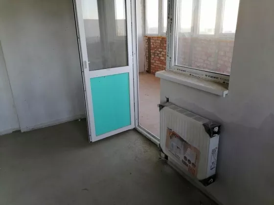 Огромная, широкая лоджия -для спорта, игровая комната для детей или просто дополнительное место для отдыха, Лоджия застеклена, на фасаде здания выделены специальные места для установки сплит системы.