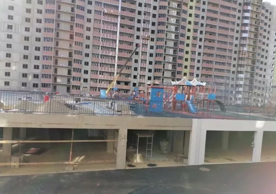 Во дворе много места, большое расстояние между домами позволяет свободно передвигаться по территории, также есть стилобат ( внизу парковочные места, вверху детские и спортивные площадки).