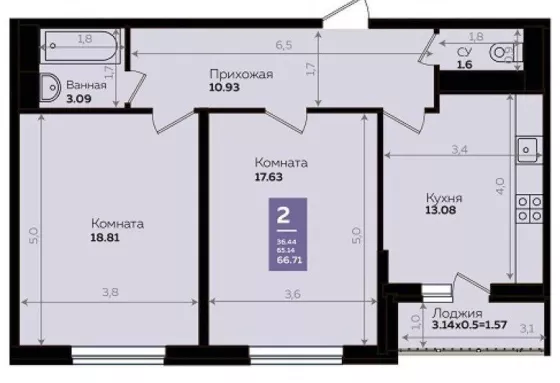 Продается 2-х комн. новостройка, 66.71 кв.м., 24/24 эт