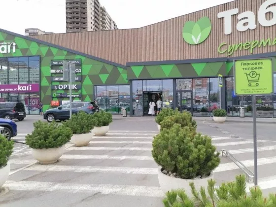 Через дорогу большой торговый комплекс "Стрелка", "Магнит", СБЕРБАНК, "Мандарин" и много других торговых магазинчиков.