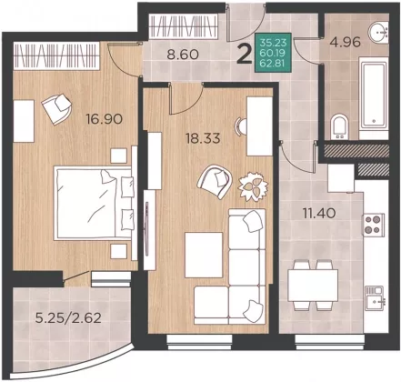 | Площадь, кв.м. | 62.8 |