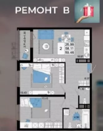 Продается 2-х комн. новостройка, 59.46 кв.м., 6/18 эт