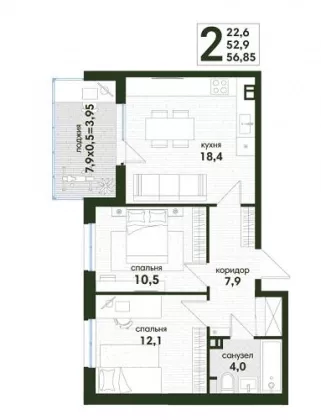 | Площадь, кв.м. | 57 |