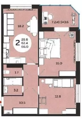 Продается 2-х комн. новостройка, 66 кв.м., 5/24 эт