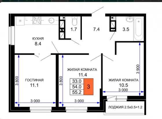 | Площадь, кв.м. | 55 |
