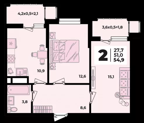 Продается 2-х комн. новостройка, 54.9 кв.м., 6/8 эт