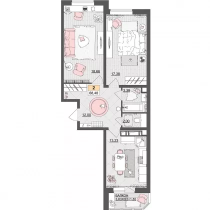 Продается 2-х комн. новостройка, 68.48 кв.м., 9/20 эт